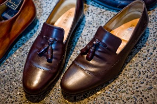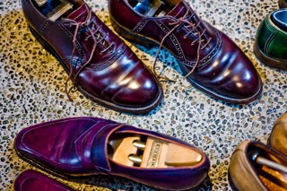 (右)これまた20年近く前のコードバンの「ALDEN」!磨けば磨くほどピカピカで味がでます。。。そして果てしなく派手なパープルにしてとオーダーした「CORTHAY」のローファー!