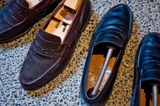 (左)20年以上前から履き続けているリアルリザードの「J.M.WESTON」!黒いのも同じウエストンなんですが、皮がとてもやわらかく完璧に素足用といった感じのレアもの!