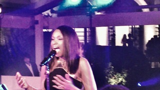 そしていよいよ実はこれからが本日のメインイベント...真っ暗になった会場の袖から静かに歌いながら登場したのは、グラミーシンガーでもあり、女優としても映画『ドリームガールズ』でゴールデングローブ&アカデミー賞の助演女優賞W受賞のジェニファー.ハドソン!!第一子を出産後、11kgの減量にも成功したのは記憶に新しいですが、実際目の前で見ると予想以上の変貌ぶりに唖然であります...美しすぎる...。