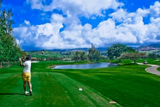 No9コースの池越えティーショットはピンクの病院で有名な『トリプラー.ホスピタル』に向かって打ち込む名物コース!!今回は、毎日の慣れない買い物三昧のストレスをここで一挙に爆発させて......