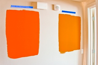 『Alluer』の自宅の壁を、メインリビングはオレンジ...廊下はイエローに塗り替えるつもりで知り合いのアーティストにちょっとづつ違うオレンジやイエローで試し塗りをしもらっていたんですが、決めるのが早いわたくしが「こっちの色!」って指示するとなんとHawaiiの人にしては珍しくその週末には速攻で全面仕上げてくれました~!!