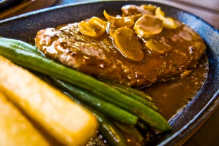 あともうひとつ...「昭和」と言えば 古くからそれこそ「プリンス通り」にある知る人ぞ知るステーキハウス『ニコニコ牛』...同じく古びたログハウス風な佇まいでありますが、こういうレトロ感はいつまでも大歓迎であります!!