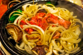 そしてたまねぎや椎茸とともに香ばしく焼いて食べる(お店の方が目の前で調理してくれます...。)『特製ハラミ』はおろしポン酢であっさりといただくわけですが、どちらかというと僕的にはこのめちゃやわらかいハラミは単独でガツっと食べたい気が......。(つけダレももう少し種類を増やして食べ方に選択肢を持たせるとともっと頼みやすいんじゃないかな~なんて...。)