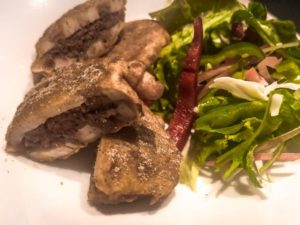 パーティー会場でもちょこちょこつまんだので 、前菜は軽目に スパイシーキーマのレンコンはさみ揚げ「Lotus Root Keema Fritters(レンコンキーマ)」だけにし、
