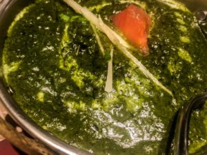 メインのカレーは「Today’s Palak Curry」であります「ほうれん草のシーフードカレー」に