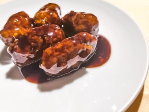 そして「黒酢の酢豚」に関しては、パイナップルの入った昔懐かしの「酢豚」のイメージを劇的にイメチェンさせた元祖こそがこの味…ひと口でおさまるこのサイズ感も完璧であります。