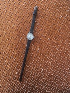 ベルトもボロボロだったので交換したいと希望してたんですが、この細いサイズのものがなかなか見つからず あきらめていたら、知り合いの時計屋さんのところに唯一あってそれを 譲っていただけたらしく、シンプルですがなんとか新品の黒いベルトにすることができました〜バックルもオリジナルのまま。