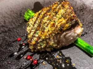 「寒サワラの香草パン粉焼き バルサミコソース」…ときたところで