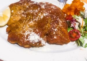 そして初めて仔牛ではなく「豚のカツレツミラネーゼ風」を頼んでみたら、写真ではわかりづらいと思いますが 、もう本当にとんでもなくボリューミーなお肉がなんと2枚も〜超美味しかったんですが、さすがの僕でもこの量は最後まで食べきる事ができませんでした…苦笑。(驚くなかれ、河野さんはペロリ!! 笑。)
