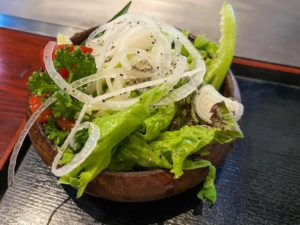 華やかに盛られたボリューミーなサラダ(ドレッシングがまた昭和っぽくてめちゃウマ!!)が出てきたかと思えば
