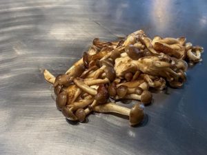 もうすでにバターで焼かれ始めていた大量の「しめじ」たちが目の前に登場…と、このなんともシステムがつかめない不思議なお店なわけなんですが、
