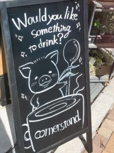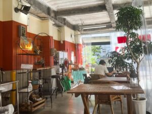 だって駐車場のデッドスペースを利用して作られたこのイートインスペースが、結構雑な作りな割に、逆にそれが海外にいるような雰囲気を醸し出していて 実に居心地がいいんですよね〜。